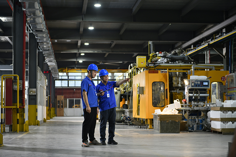 日均產EVOH/PE瓶120000、壺13000、20L桶6000、200L桶1000、蓋180000 (PCS)